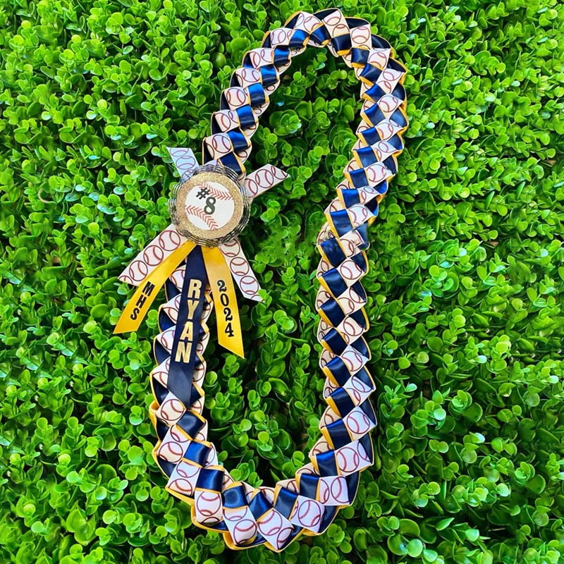 Capture the joy of graduation with this beautiful ribbon garland, a perfect addition to your celebration. Personalized with the graduate's name, school initials, and athlete number, it's a unique and memorable decoration for this special occasion.