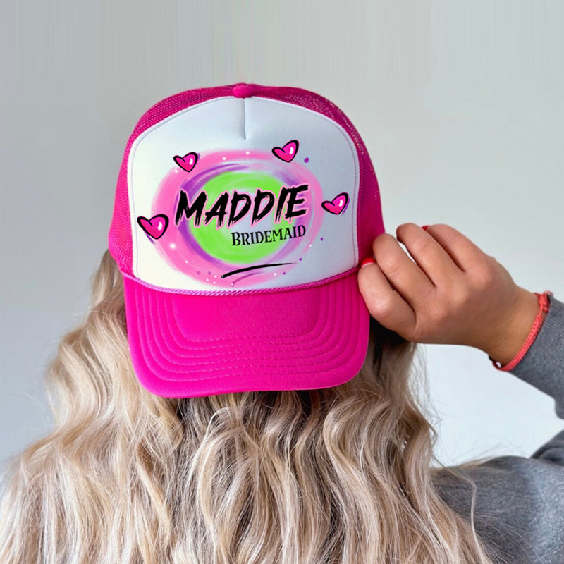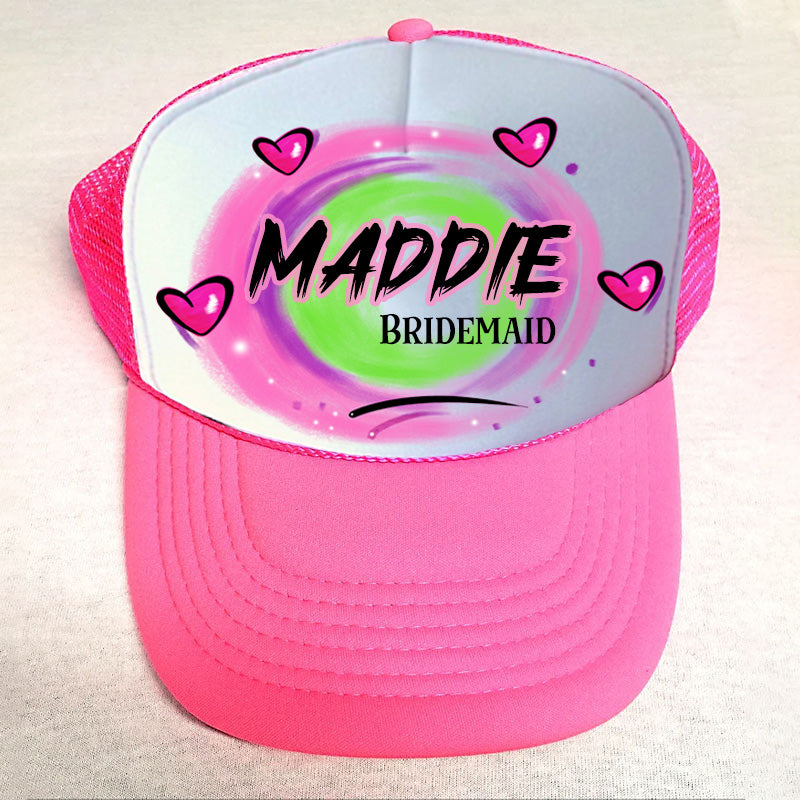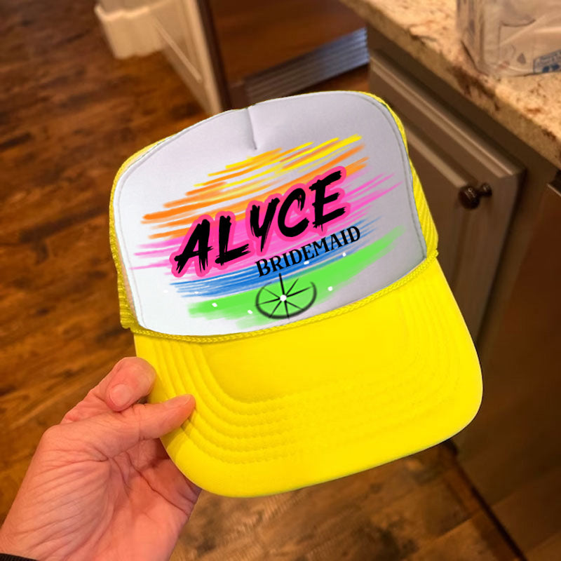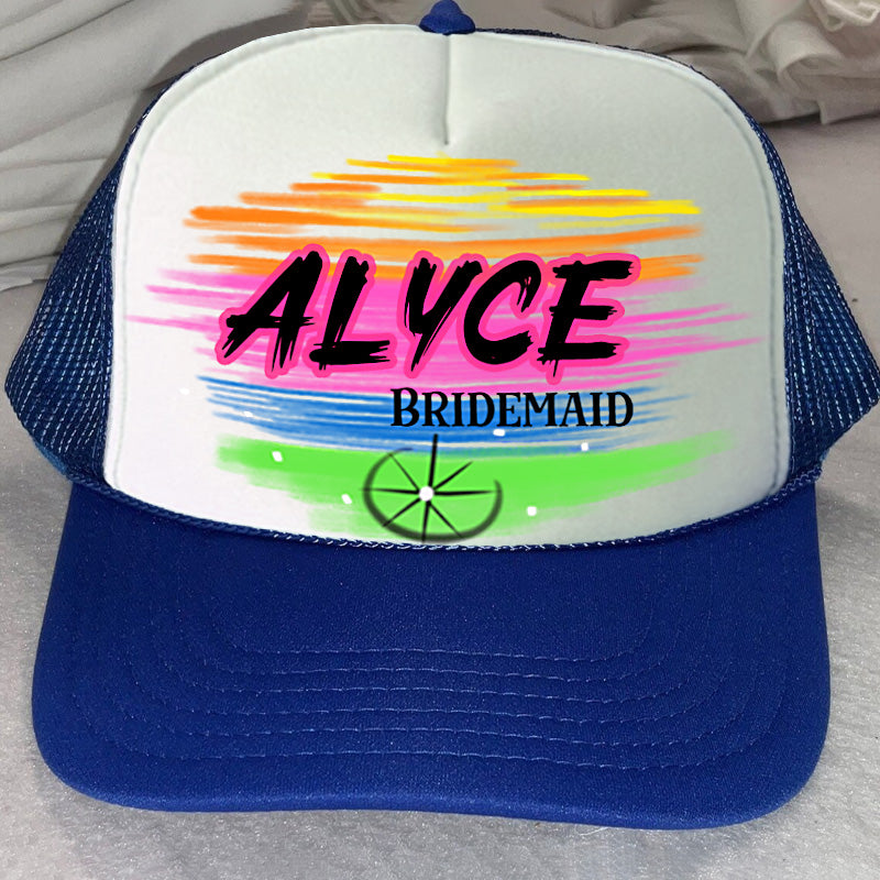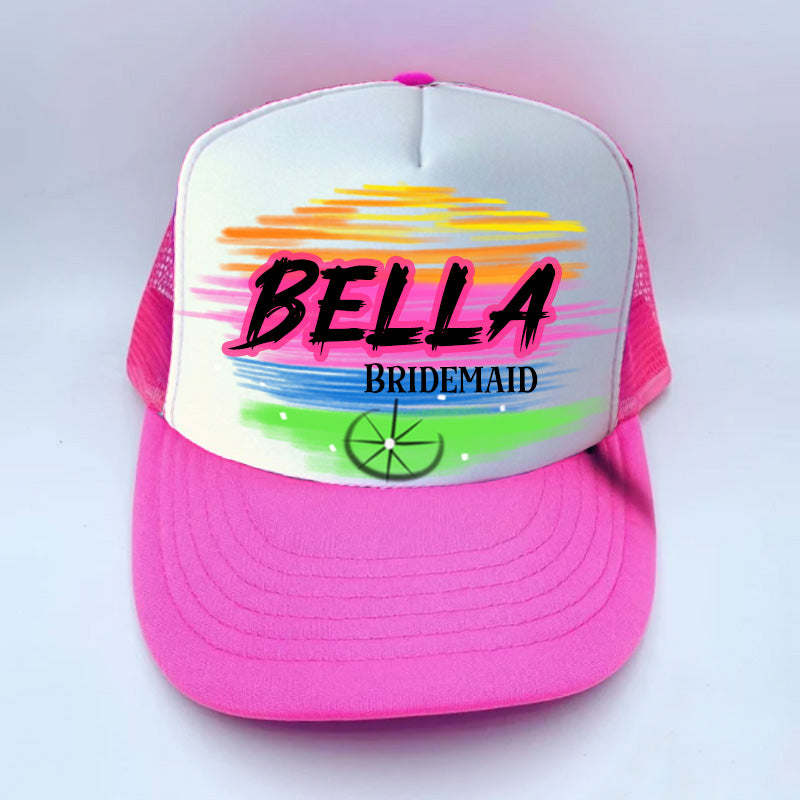 Airbrushed Bride Bachelorette Wedding or any name snapback trucker style hat. Any colors.