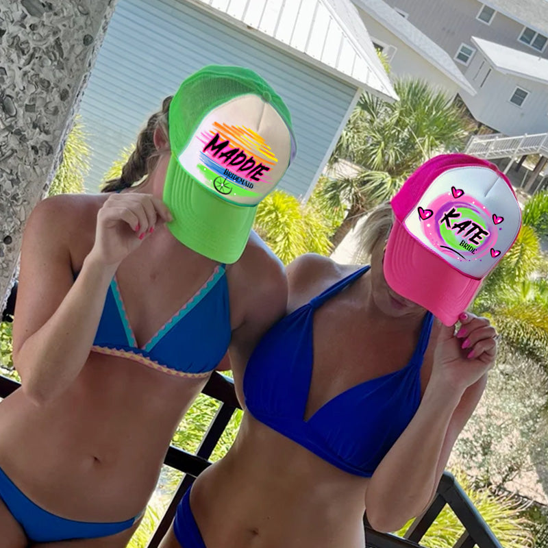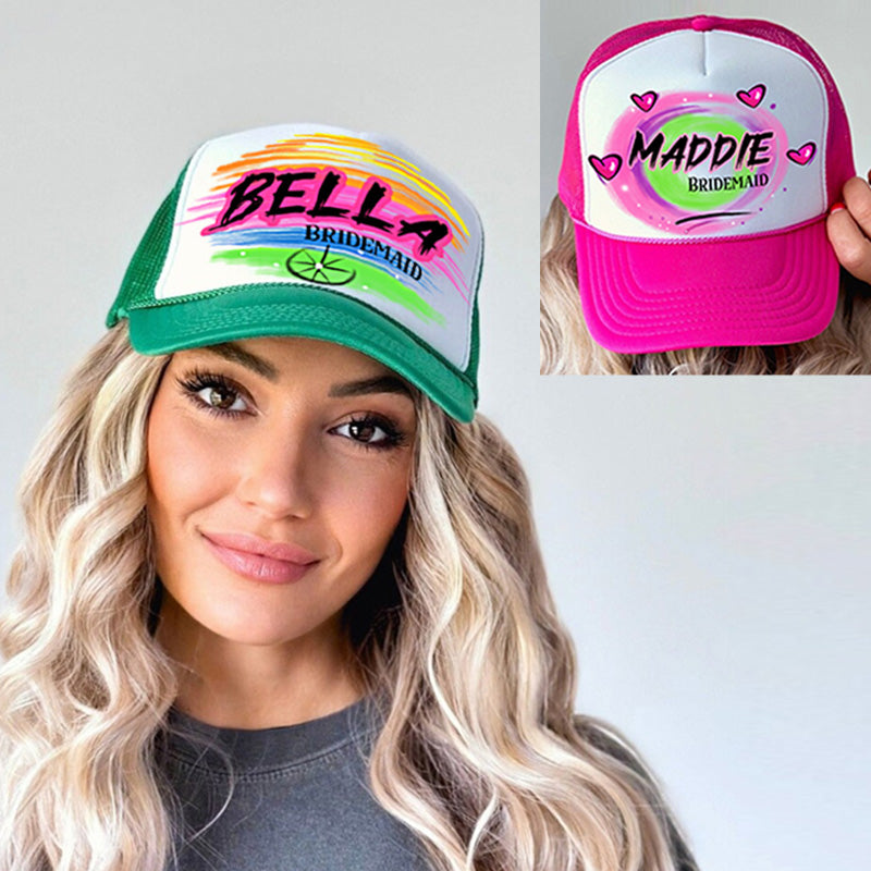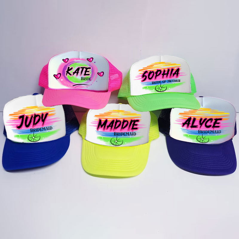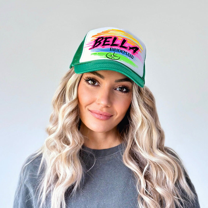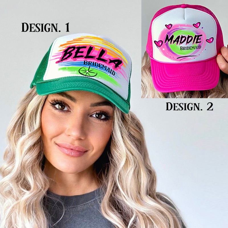 Airbrushed Bride Bachelorette Wedding or any name snapback trucker style hat. Any colors.