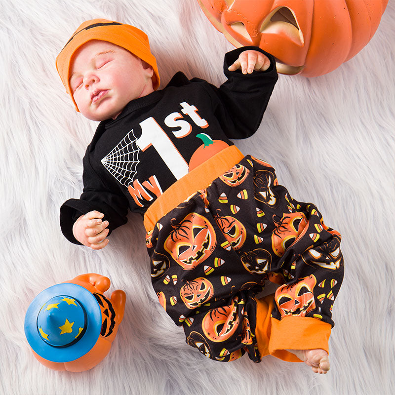 Your baby boy is sure to be the cutest pumpkin in the patch in this outfit!