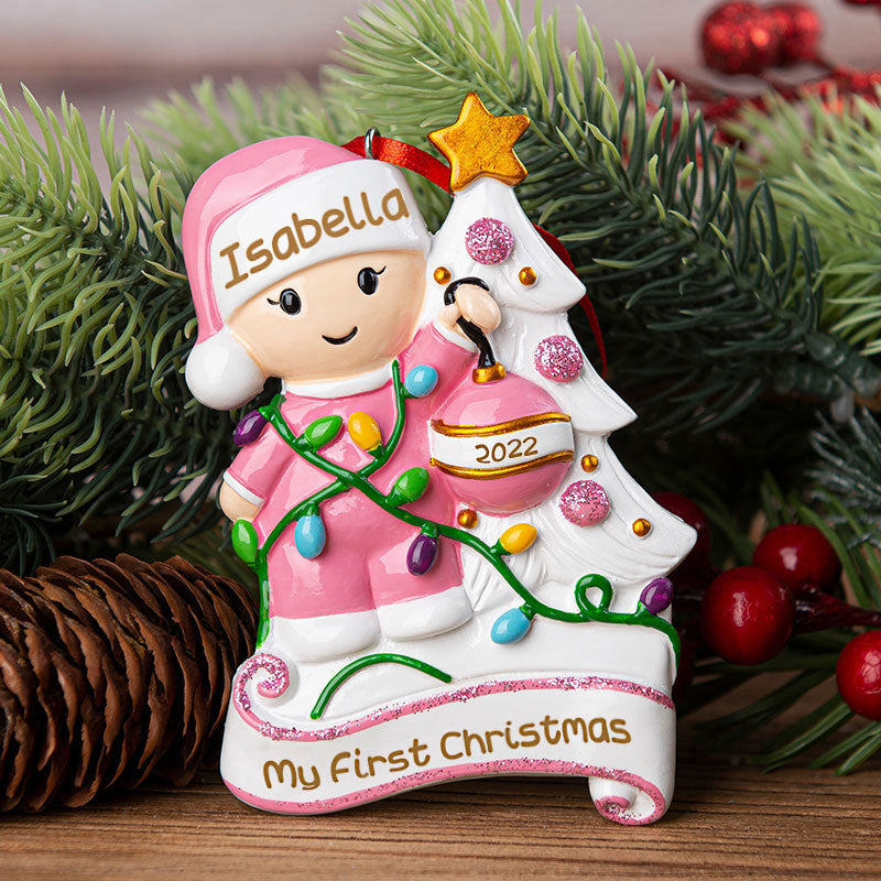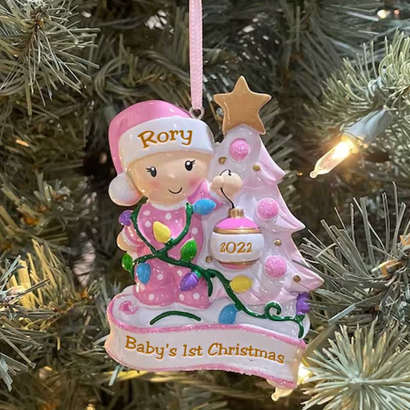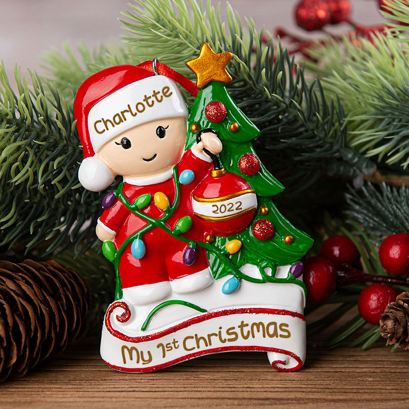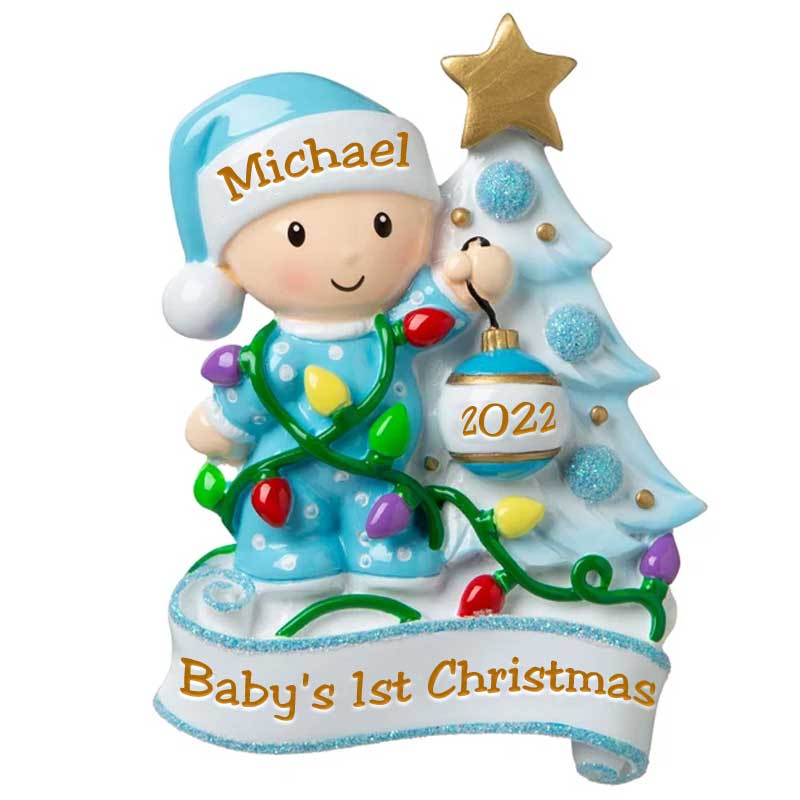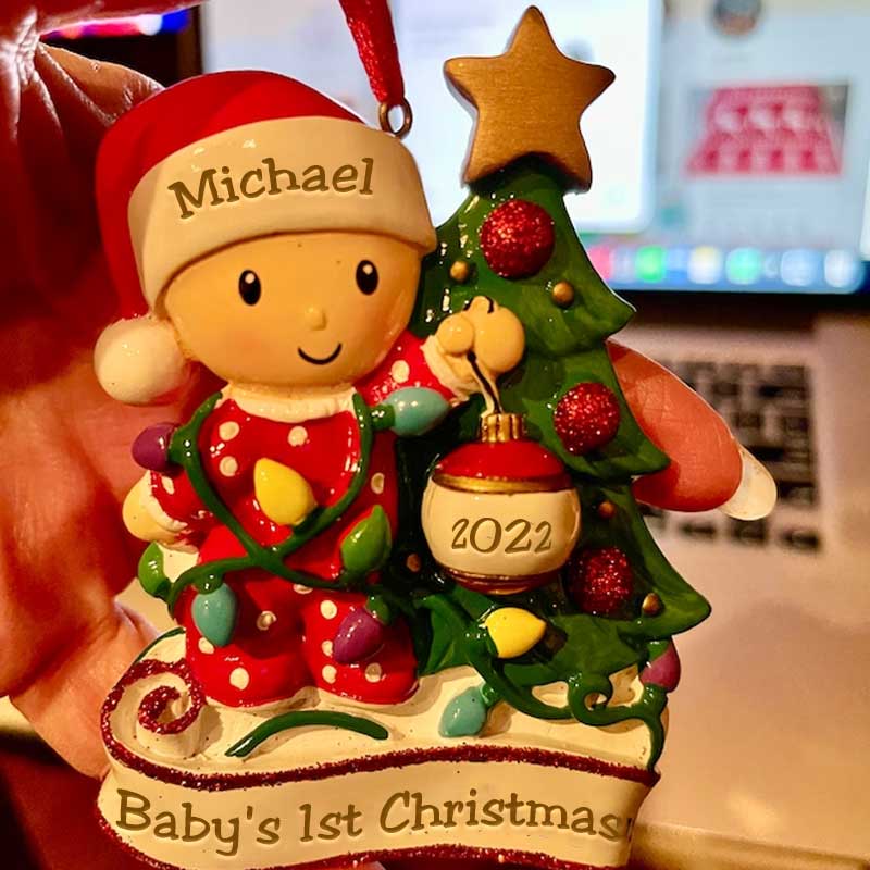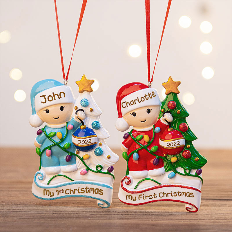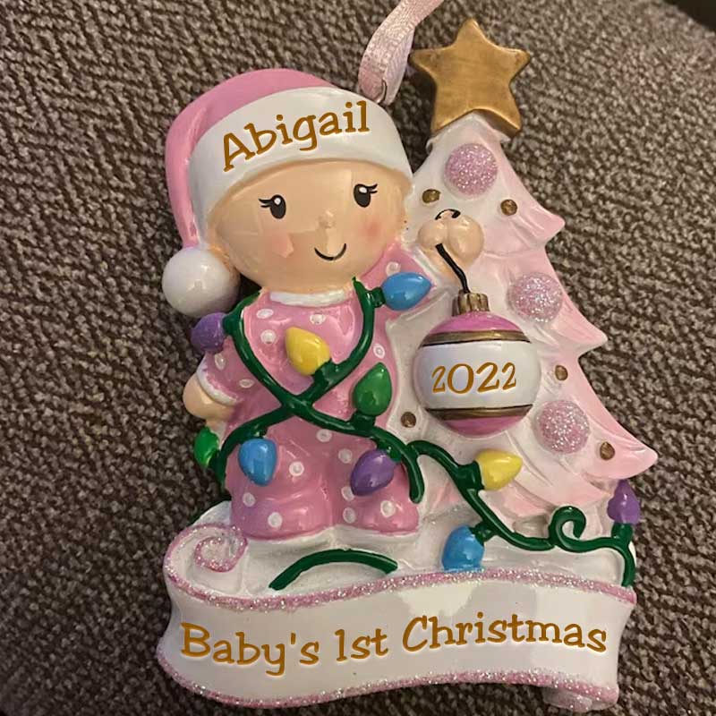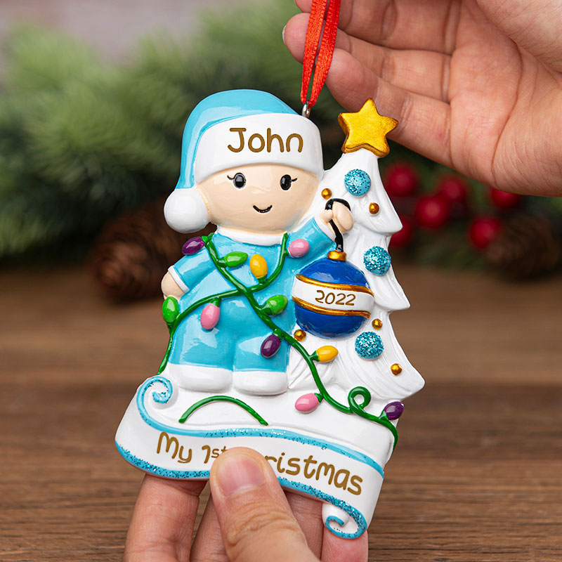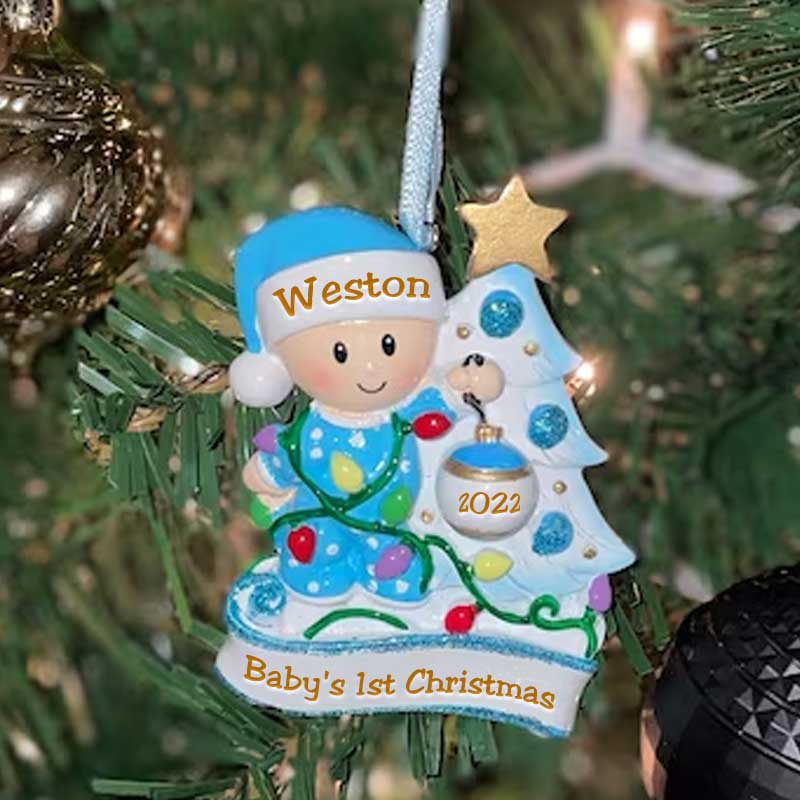 This adorable Baby's 1st Christmas Ornament is sure to be a special gift to remember a baby's very 1st Christmas. We can hand personalize this and add the stats to make this a keepsake to be cherished for many years. Ornament comes with a ribbon attached ready to hang.